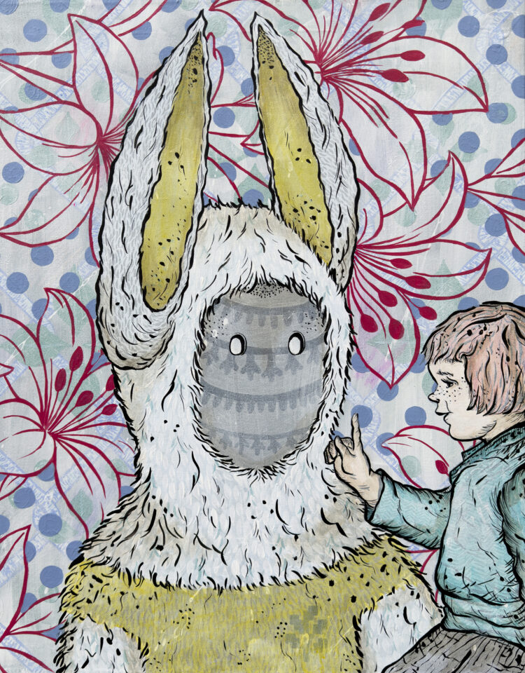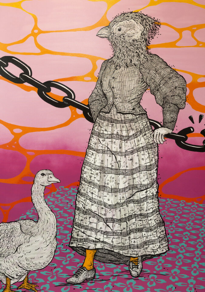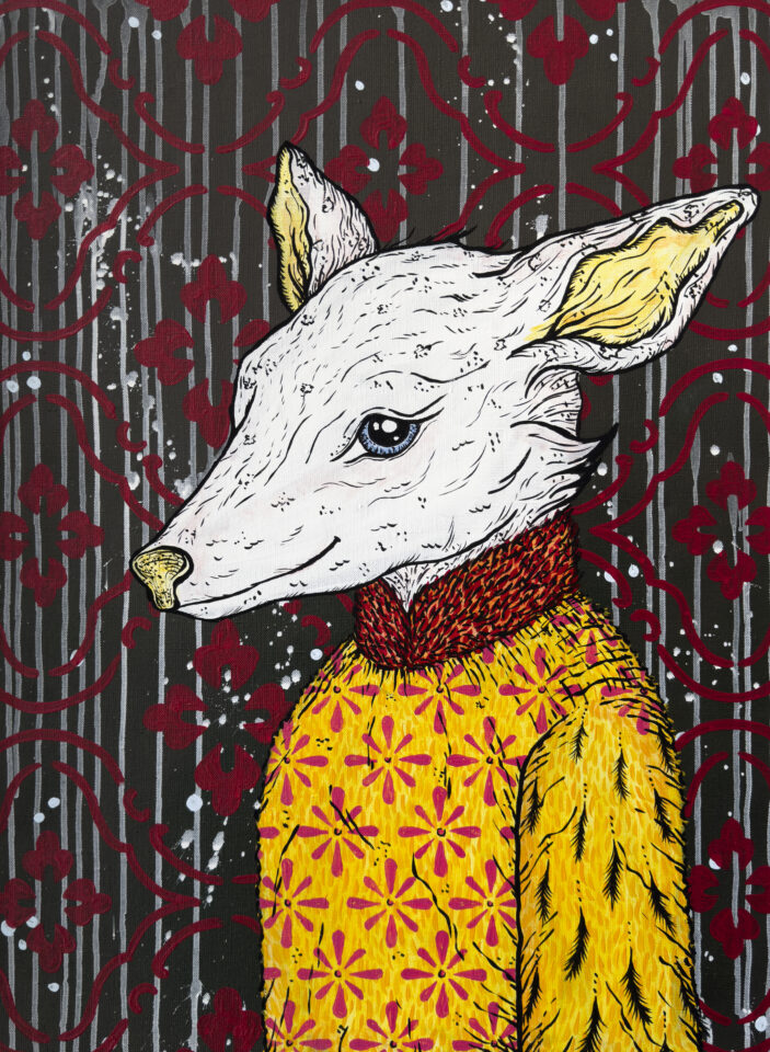 Marina Mesar (OKO) multidisciplinarna je umjetnica koja se izražava kroz slikarstvo, crteže, ilustracije, murale i javne intervencije. Njezini radovi često prikazuju nadrealne prizore i antropomorfne figure, spajajući ljudske, životinjske i fantastične elemente kako bi istražila teme identiteta, sjećanja i mitologije.