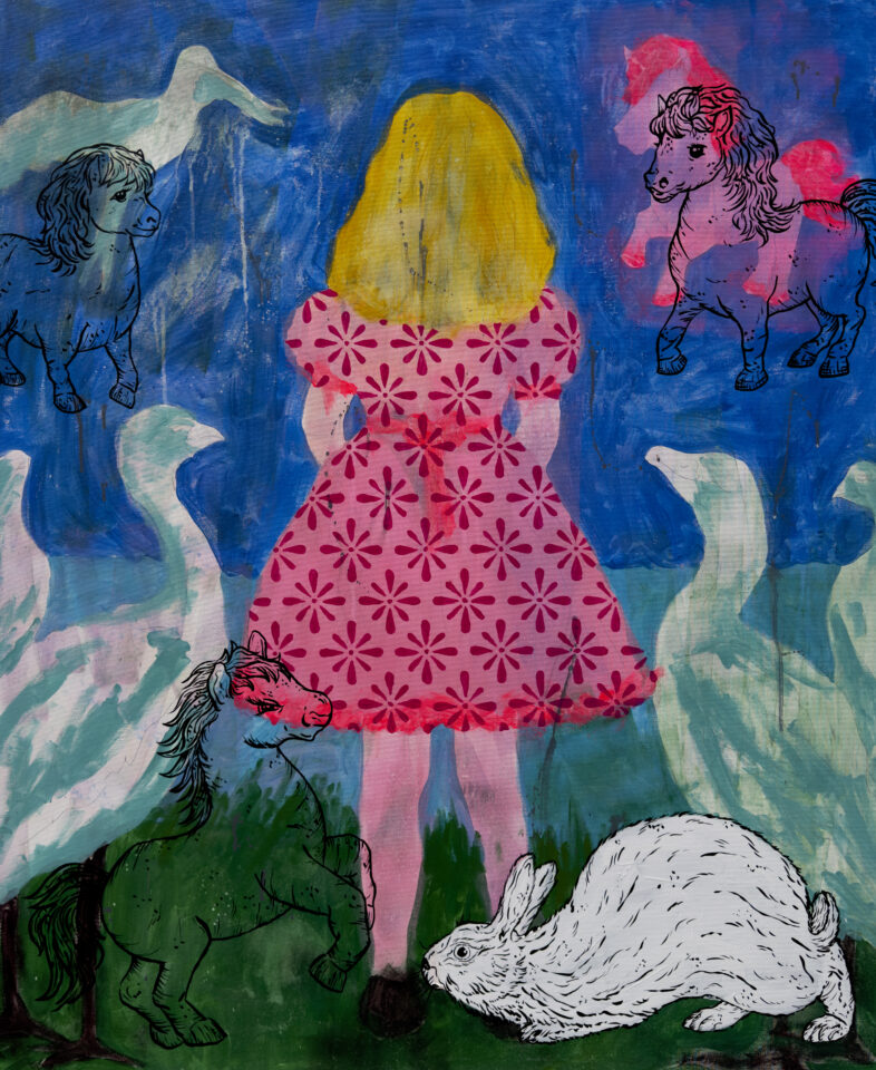 Svaka slika predstavlja autonomnu narativnu cjelinu, nastanjenu neobičnim stvorenjima nalik tihim čuvarima ili svjedocima nadrealnog svijeta. Likovi evociraju krhkost nade i ukazuju na ironiju svakodnevnog života, prenoseći kompleksna značenja. Kombinacija figura u starinskoj odjeći s okruženjem iz suvremene kulture stvara ambivalentan vremenski kontekst, mjesto susreta različitih vremena i kulturnih kodova, dok bilježi osobna emocionalna stanja umjetnice.