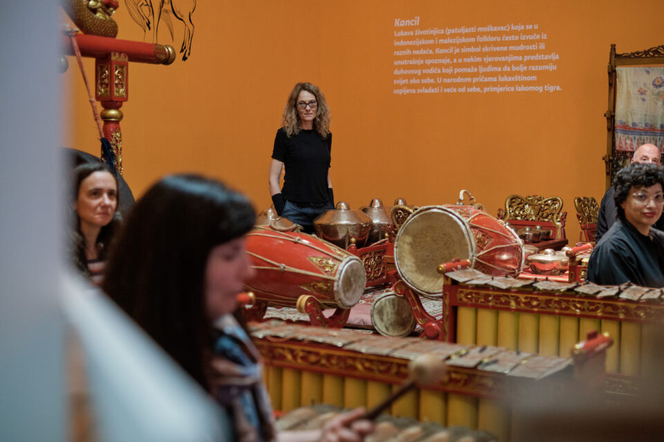 Izložbeni program obogaćen je, među ostalim, i radionicama javanskog gamelana – tradicionalnog orkestra brončanih udaraljki, nastalom u suradnji s indonezijskom i filipinskom zajednicom u Zagrebu. Gamelan se svira sjedeći, bez notnog zapisa i dirigenta, što sudionicima pruža jedinstven uvid u kolektivni glazbeni proces. „Jednako kao i s radionicom 850 žena za 850 žena, sudjelovanje u gamelanu, autentičnom izrazu indonezijske kulture, ima izuzetno terapeutsku funkciju, koliko zbog zajedničkog muziciranja, toliko i zbog brojnih zvukova udaraljki, gongova koji kreiraju fantastičnu atmosferu u kojoj pojedini posjetitelji sudjeluju gotovo svakog subotnjeg popodneva,“ približila je kustosica Renata Filčić jedan od najpopularnijih izložbenih programa. Radionicama se može pristupiti i bez glazbenog predznanja, pa čak i pasivno – slušanjem. Održavaju se 28. lipnja te 5., 12. i 19. srpnja, od 16 do 18 sati.