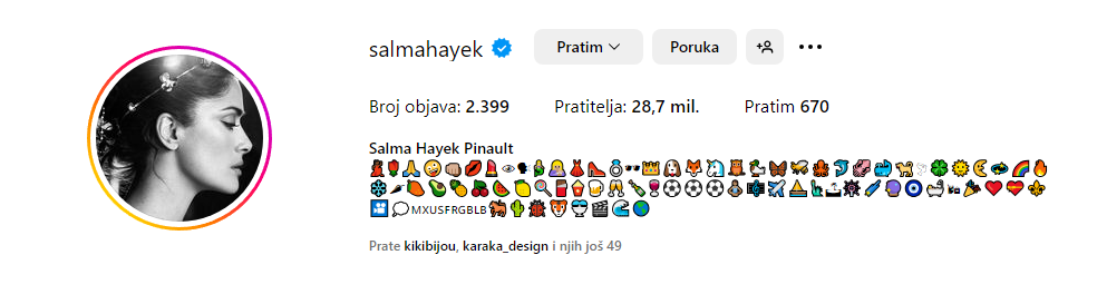 No u slučaju da vam izmišljanje novog, originalnog načina izražavanja, a kamoli kreativno poigravanje velikim i malim slovima, uistinu uzima previše vremena od tih 7,7 sati koliko dnevno moramo biti prikovani za ekrane, uvijek se možete ugledati na one mlade generacije koje tek dolaze. Na primjer, na pedeset i sedmogodišnju glumicu Salmu Hayek, a koja je ovu dilemu vrlo elegantno riješila jednim Kleopatrinim udarcem i to tako što je naprosto ubila i velika, ali i mala slova. Što je pjesnikinja željela reći, još uvijek je misterij. No tko uspije odgonetnuti ovaj rebus ima priliku postati novi champollion. Jasno, napisano mali slovom, da bi se razlikovao od svog cijenjenog prethodnika.:)