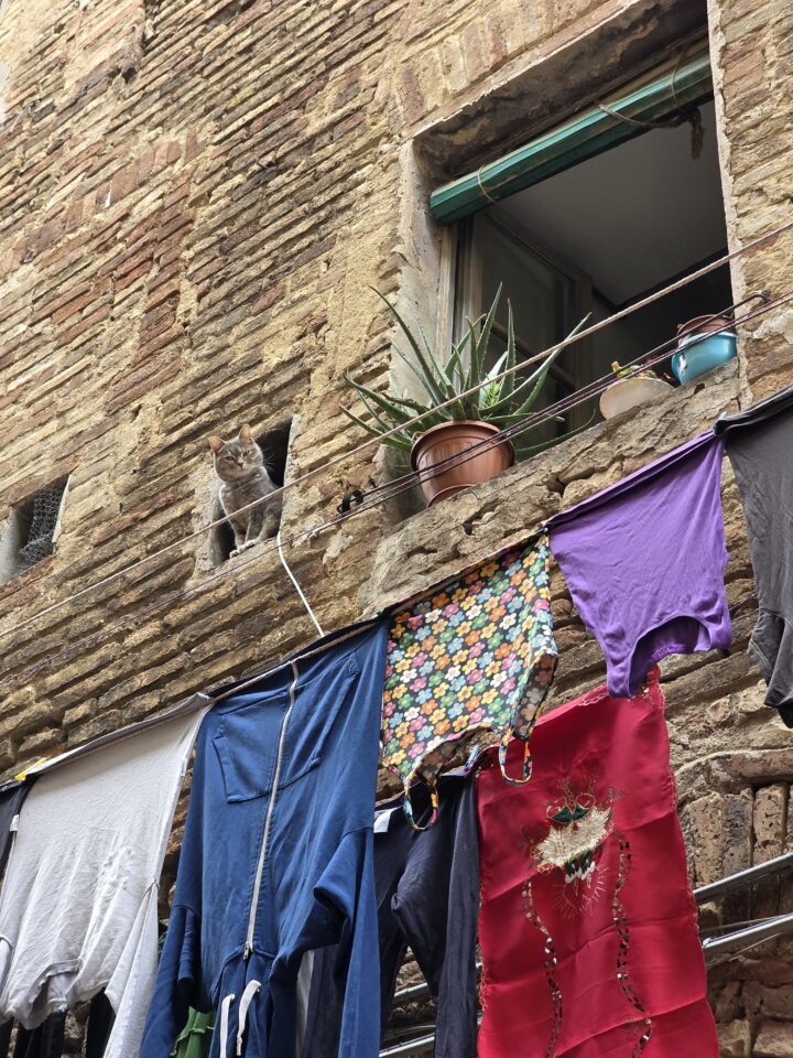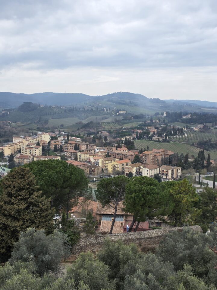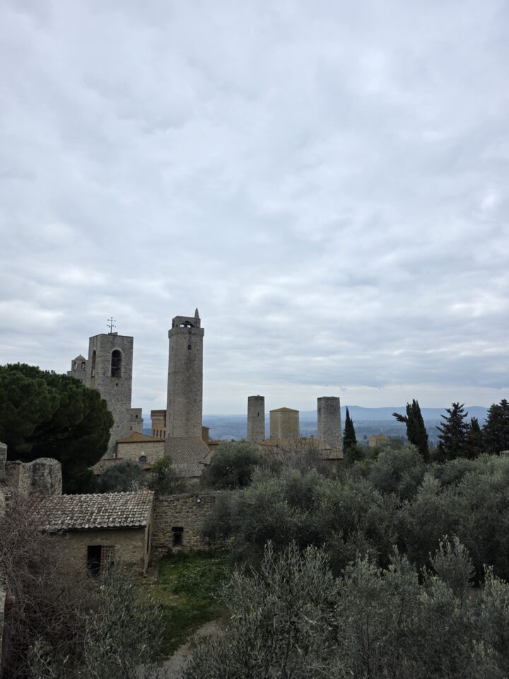 Nastavili smo prema San Gimignanu, poznatom kao “Manhattan srednjeg vijeka”. Taj je nadimak selo dobilo zbog brojnih srednjovjekovnih tornjeva. Plemićke obitelji koje su vladale gradom još u 12. stoljeću podigle su 72 tornja kao simbole svog bogatstva i moći. Danas je ostalo samo 13 izvornih tornjeva, koji čuvaju impresivnu siluetu grada i nude očaravajući pogled na okolne vinograde i maslinike. Smješten je visoko na vrhu brda i svakako ga vrijedi posjetiti. Vrlo je šarmantan sa svojim starim ulicama i novim trgovinama koje su se lijepo uklopile u vizuru. Ovdje sam srela mačku Friskies koja je šetala sa svojim vlasnikom podno zidina. Onako ležerno, kako valjda i priliči jednoj talijanskoj mački.