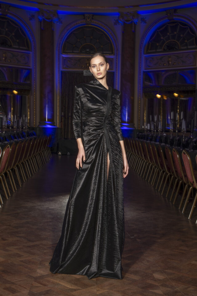 Poštujući kod brenda naglasak je na modele koji prate liniju tijela ili su pak raskošno formirani u struku, dok su tkanine bogatih tekstura s naglašenim volumenom u baznim crnim tonovima besprijekorno ukomponirani u cijelu kolekciju.
