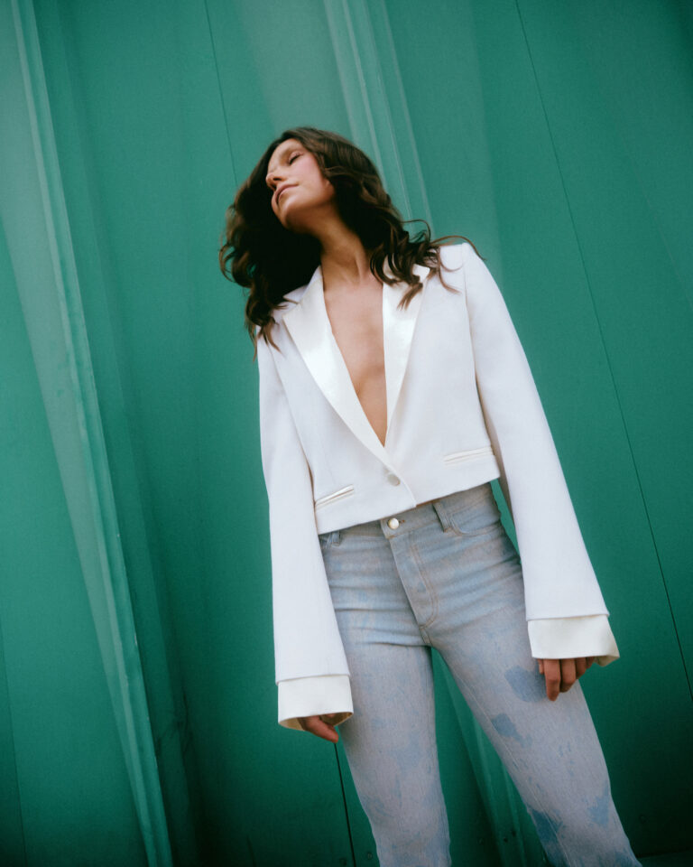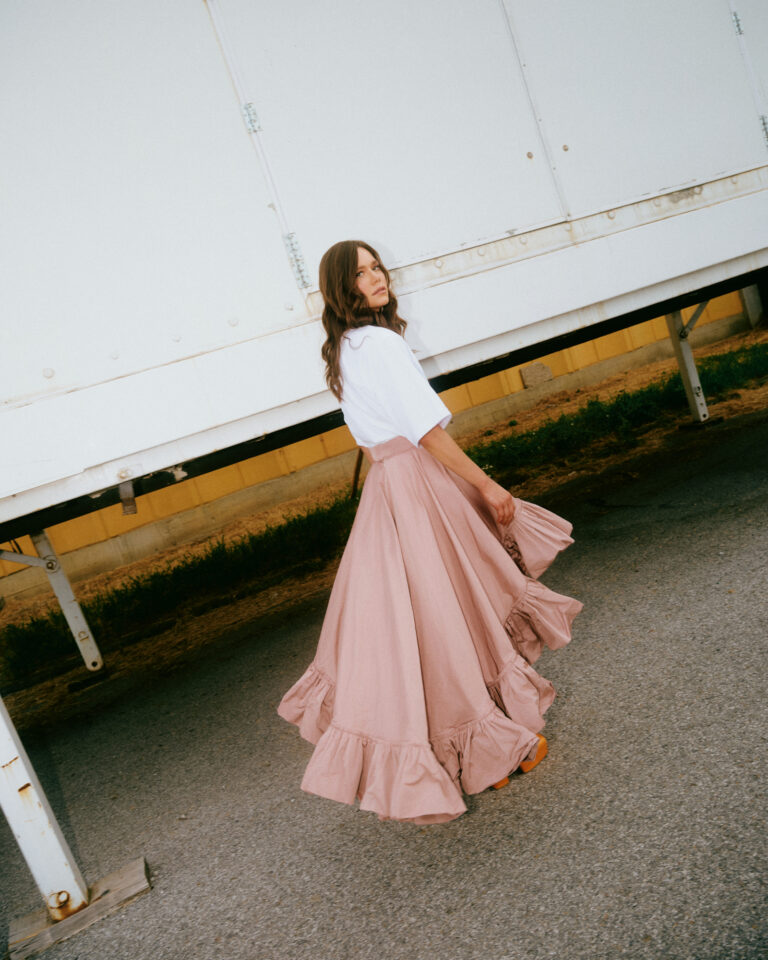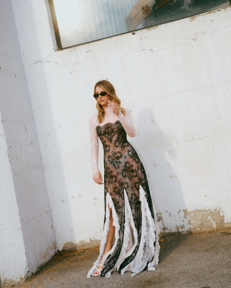Traperice krojene po mjeri i dalje su među najtraženijim komadima, dok asimetrična suknja od roze čipke donosi savršen balans između nježnosti i suptilnog grunge izraza.