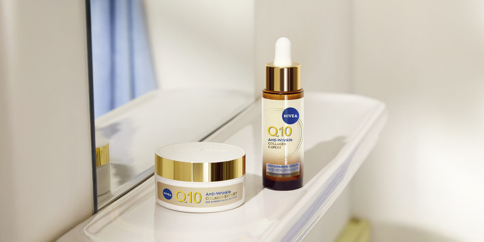 Uz Q10 Collagen Expert maslac za lice, proširena NIVEA Q10 linija uključuje i Q10 Collagen Expert 3u1 serum za obnovu kože, koji dodatno podržava elastičnost i čvrstoću kože. U kombinaciji, ovi proizvodi pružaju četverostruki učinak: zatezanje, definiranije konture, veću čvrstoću i ublažene bore.
